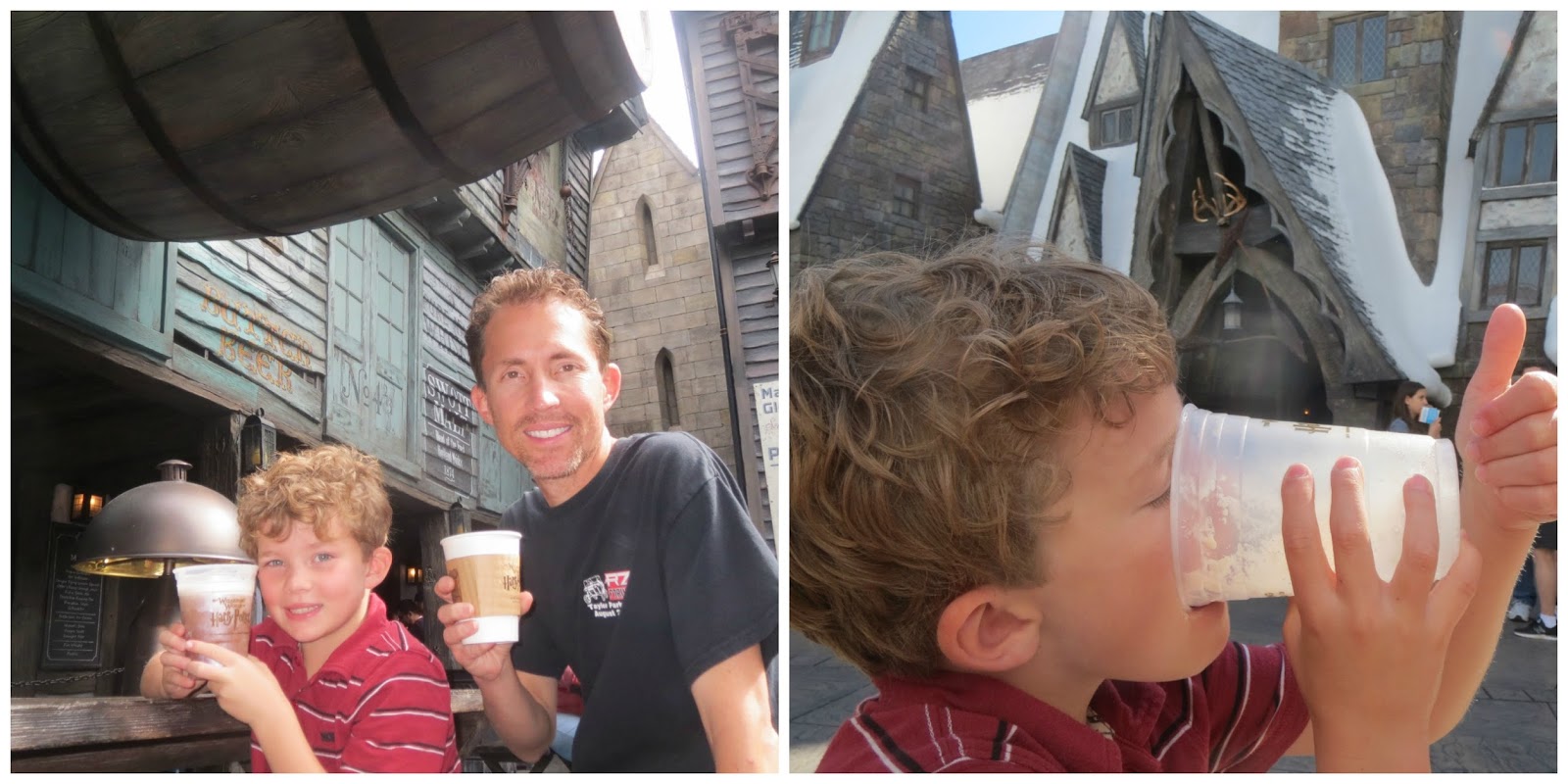 Ready to get soaked! We found a locker for our stuff and headed straight for Pluto's Plunge. Since we knew we were going to get soaked, and were prepared for it, we were able to totally allow ourselves to have a blast. We went on this ride three times in a row, each time getting to know the other people in our raft. We hooted and hollered and got soaked. Next, was Popeye and Pluto's Barges. It's a round boat ride where usually whoever is the unlucky one gets soaked. As this ride progressed, it for wetter and wetter until, there wasn't any hope of having any dry spots left! Again, getting to know our boat mates was fun. And yet. We were saturated. One more time on Pluto then we had to figure out how to dry off a bit. I know! Dr. Doom' Drop tower! Yup, it certainly helped! Back to Diagon let for a hot Butter Beer. It hit the spot. Jadeyn made a special discovery. He could two secret spells! He was so excited to know about some that not many people even knew what to look for. At Hogsmeade, Kevin and I took turns on the Dueling Dragons. Back to Diagon and back again the other way right before park close. We make it to Escape From Greengot's. We practically had the place to ourselves. Normally teeming with people, the peacefulness was wonderful! Perfect was